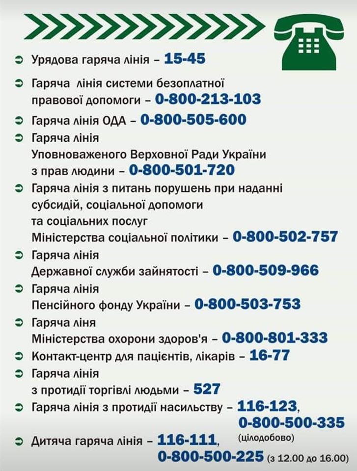 8. «Лiнiя допомоги»: (067) 975 76 76, (066) 975 76 76, (093) 975 76 76.