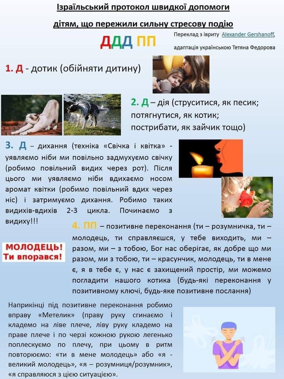 Не бійтеся лишній раз обійняти, погладити дитину, потримати її за руку або поплескати по плечу. Позитивні тілесні контакти дуже корисні для зняття напруги;